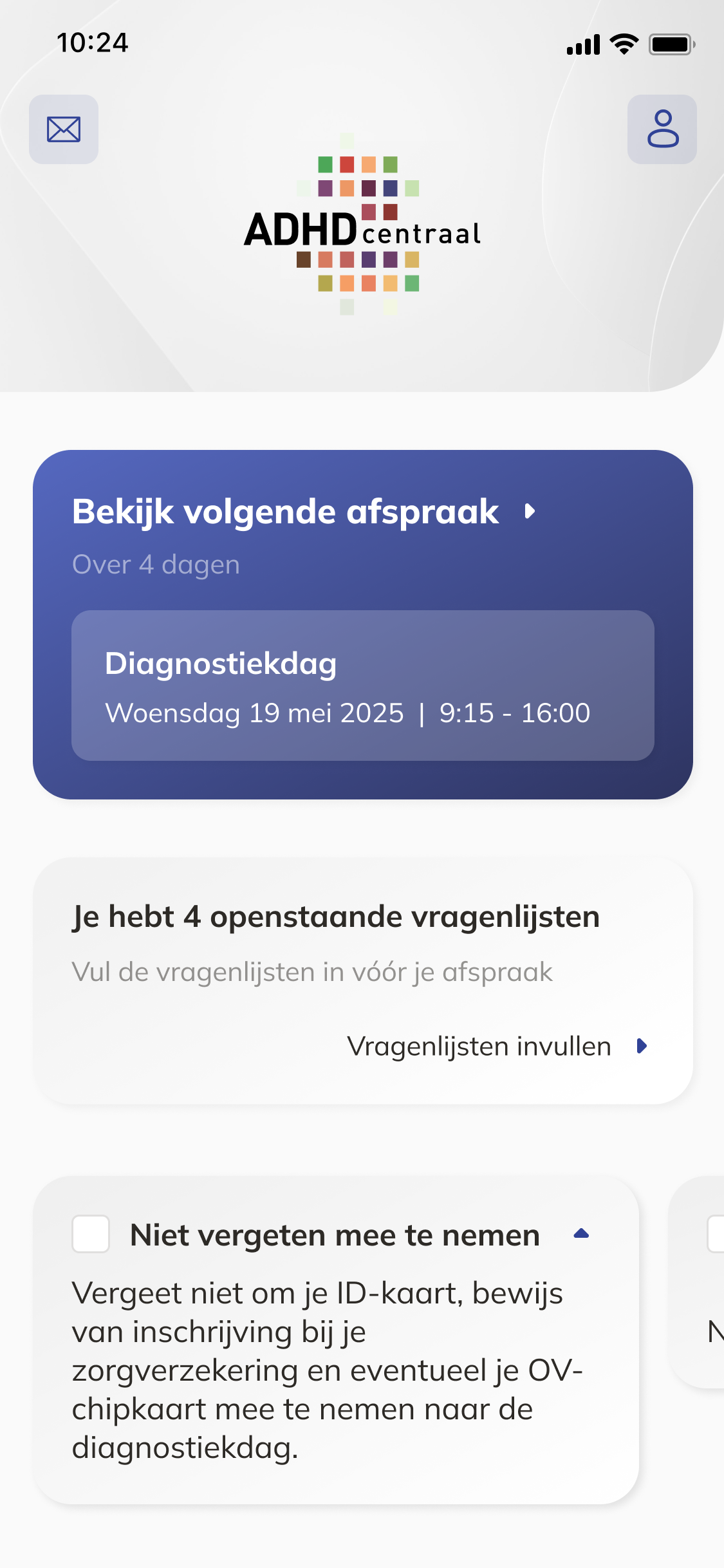 In this extensive project, the experience of both patients and practitioners at ADHDcentraal will be optimized. For example, via the ADHDcentraal app the patient has all the information about their treatment at hand and practitioners work in an attractive portal. A direct link to the database of the electronic patient file provides the input for the system. Naturally, everything works in accordance with our ISO27001 certification and the NEN7513 standard of Dedimo.