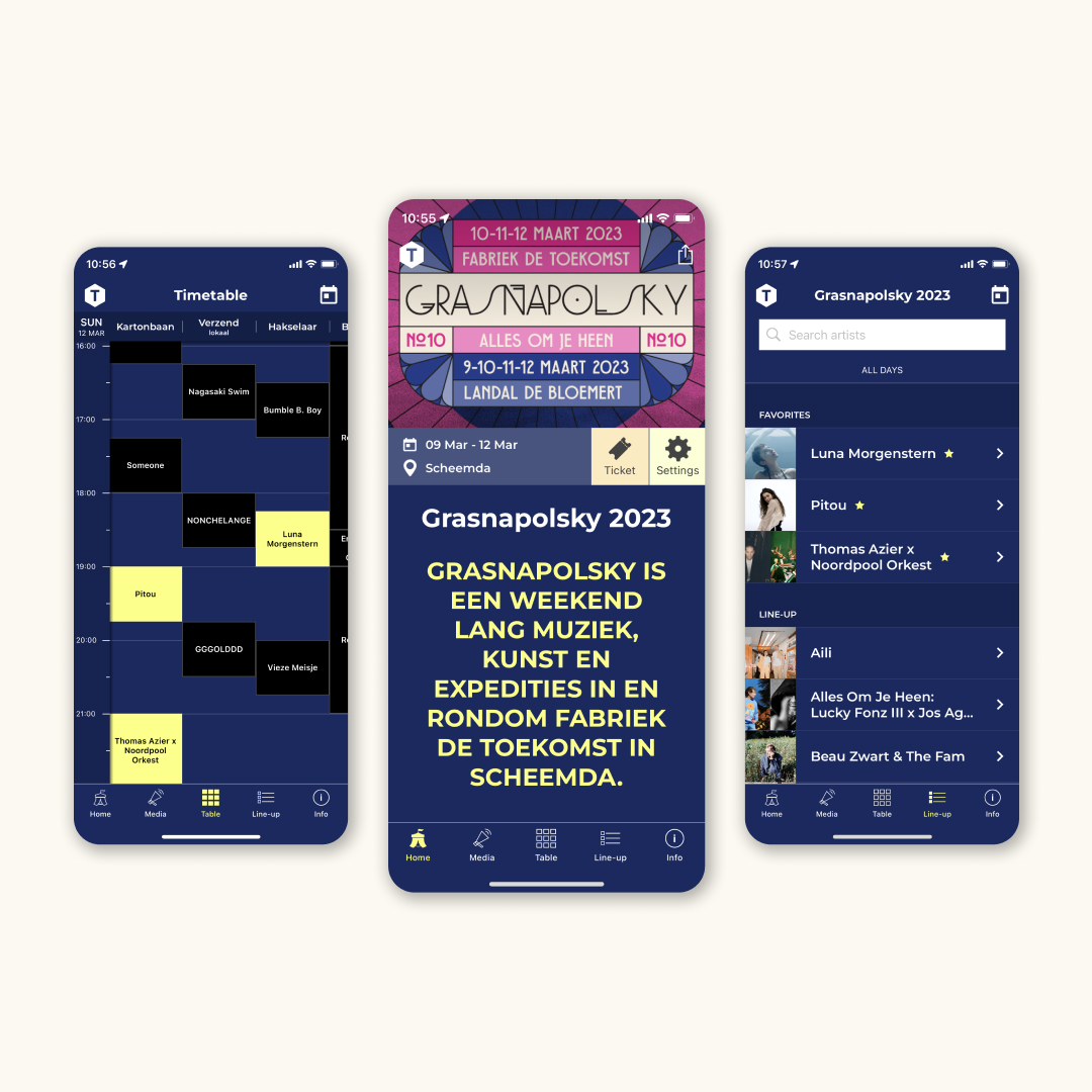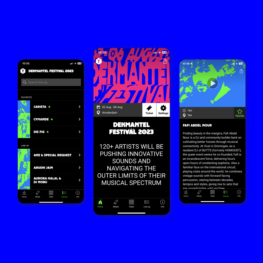 The TMSQR platform app, in which some 150 festivals in 12 countries are active, is now an established name in the interesting world of music festivals. Festivals can very quickly launch a beautiful app to their audience and hundreds of thousands of other TMSQR app users. And festival-goers can quickly and easily see in one app which artists are playing where. TMSQR solves the problem that many festivals do not have enough budget to have a good app built, and maintained.