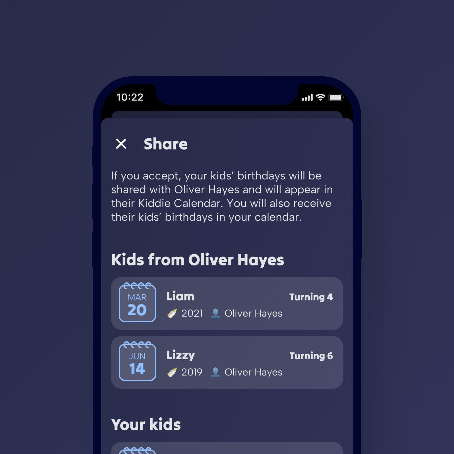 Kiddie Calendar is een passieproject van de trotse ouders Guy & Aline. Het idee ontstond uit iets herkenbaars: je vergeet sneller de verjaardagen van kinderen van vrienden en familie. En omdat kids geen social media hebben (gelukkig maar), mis je reminders. Het alternatief, iedereen apart vragen en alles handmatig in je agenda zetten, voelt al snel als een onmogelijke taak.